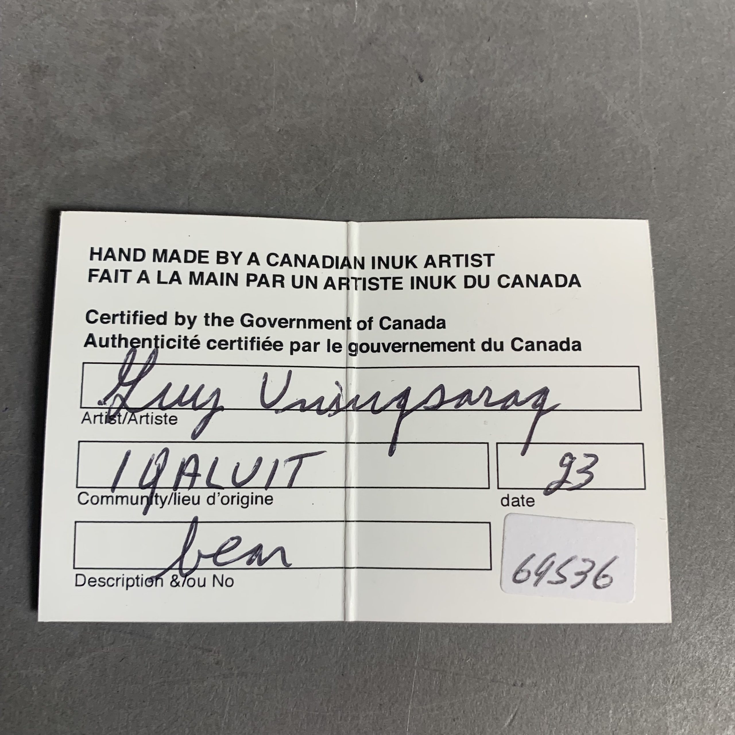Community: Iqaluit Year: 2023 Stone: Serpentine